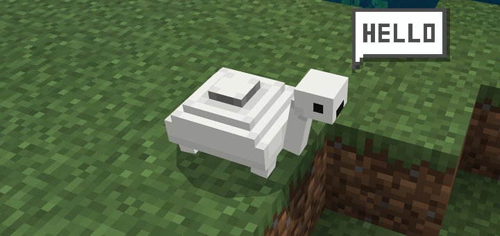 Mine Turtle mob says hello and can explode. It has a button on it’s shell and if someone steps on a turtle or hits it, it will explode, like an original one.