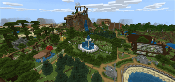 Want to relax? Spend some time in the Bedrock Gardens complete with a huge fountain!