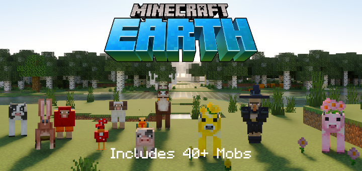 This addon adds more than 40 unique mobs from Minecraft Earth into the game with their original models, textures, animations, and sounds. Includes mobs such as the Glow Squid, Moobloom, Cluckshroom, and Jolly Llama. This addon will be updated to include more features from Minecraft Earth.