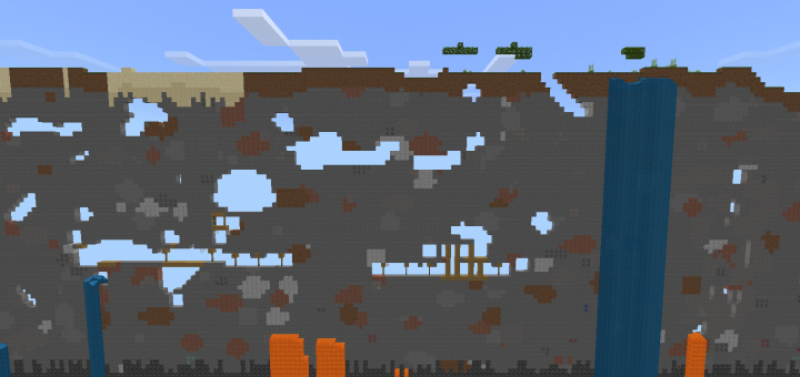 The world is completely 2D, but liquids is flowing down the void. There are also three different maps to choose from. Your main task is to go to the Nether, which is unaffected by the world.