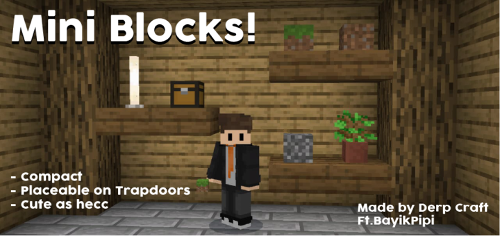 Need some little cutie blocks to decorate? But most of them faking it with entities? Try Mini Blocks! This Addon adds 4 blocks for now and more are coming in the future! All of them are obtainable on survival with cheap materials!
