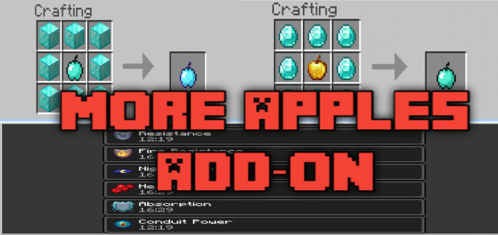 This addon is very simple, it just adds more food to the game, more APPLES, I think it’s very useful, because it isn’t possible to craft Enchanted Golden Apple so this addon adds something better like Netherite Apples, Diamond Apples or Emerald Apples, which are craftable, enjoy!