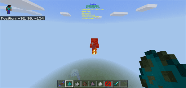 This is a script which makes use of the latest scripting feature in 1.13 for Minecraft. It adds a status indicator on the screen when aiming/focusing on a mob. It’s a great example to show off some of the new modding capabilities possible with the new scripting API for Minecraft: Bedrock Edition. It’s similar to ‘F3’ for Java Edition.
