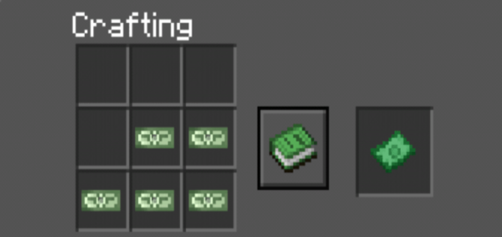 The currency starts with creating $1 from which you create $5 from which you create $10 and lastly $30. These are created only in crafting table. These recipes can also be converted back such as you can convert $30 back into 3 banknotes of $10. These all recipes are shapeless except $1.