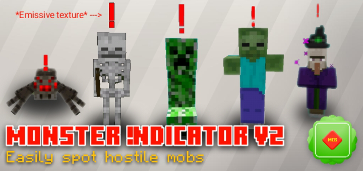 This pack adds an exclamation mark above hostile mobs. Which is also visible in dark places. It works differently for ghast and vex.