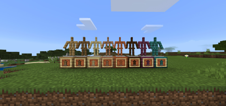 In Minecraft there is only one armor stand, but this addition will increase the In Minecraft there is only one armor holder, but this addition will increase the number of armor stand (of all types of wood) wood) Types: Oak, Spruce, Birch, Jungle, Acacia, Dark Oak, Crimson, Warped.