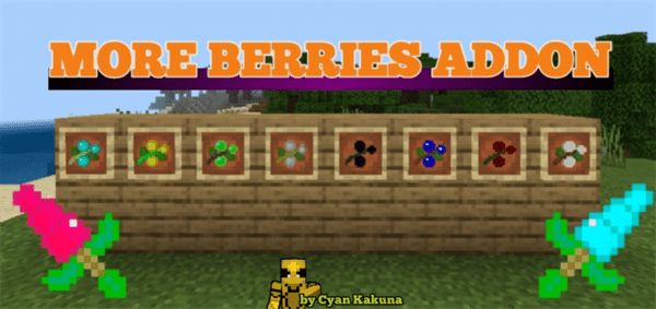 The More Berries Addon adds new types of berries to MCPE which will give you spectacular powers, such as speed, absorption,invisibility and much more! And it is also possible to create swords with these items!