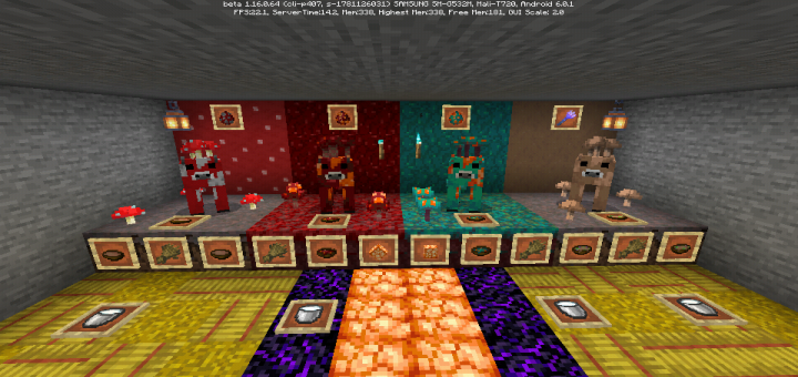 This add-on adds Crimson and Warped Mushrooms-cow with Crimson Stew and Twisted Stew in addition to a position made from Shroomlight