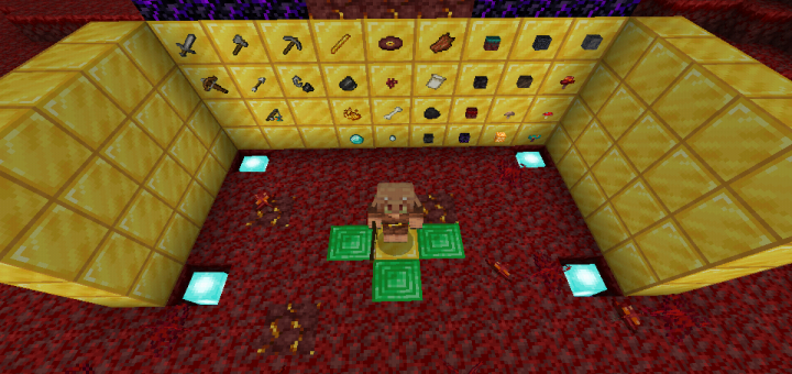 This add-on modifies the piglin exchanges with some exchanges in the first versions and other new exchanges for a gold bullion and little probability