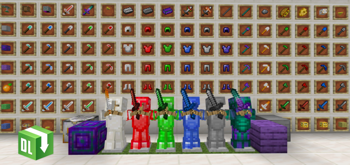 Enjoy the beauty of having even more tools if you have some redstoen, emerald, lapis and quartz laying around without any use then this addon is for you!!! This addon brings 6 new armor types to your game, 15+ new decorative blocks and 50+ new tools to play with. Feel free to enjoy these items in survival as you like.