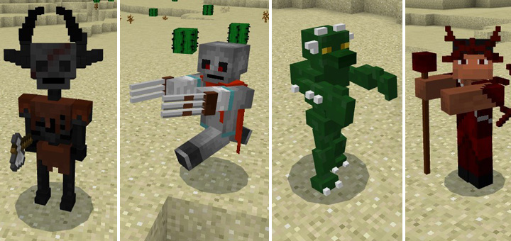 Reptilian (replaces Husk): The reptilian hunts villagers and players. It’s a very powerful mob which can be very dangerous if you try to battle it alone.