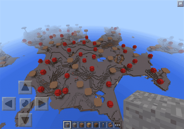 When you first load up the seed you will find yourself on a small little island. If you walk straight ahead over the little sand and then dive into the water and continue swimming straight forward you will soon see the some mushroom trees further away. Keep swimming (or flying if you are in creative mode) to get there.