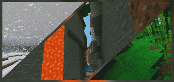 Jungle biomes are essential – with the new Bamboo, you can farm it infinitely to make an infinite fuel for the furnace & spawn near snow to have fun with some friends – or make an ice farm for your own!