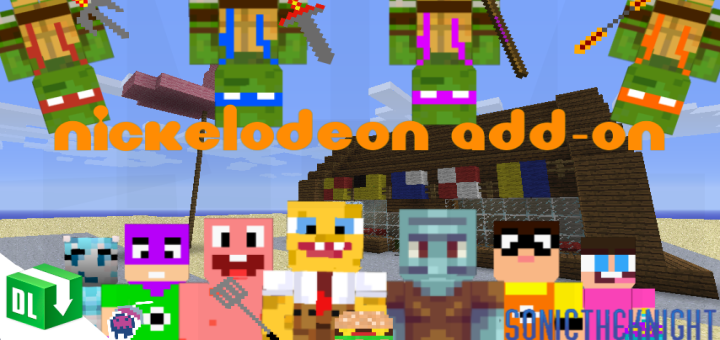 Hello everyone and welcome to Nickelodeon Add-on. This add-on adds 11 nickelodeon characters and 13 items from Spongebob, Fanboy and Chum Chum, The Fairly OddParents, TMNT and My Life As A Teenage Robot. I decided to create this add-on because MCPEDL doesn’t have a Nickelodeon add-on with most Nickelodeon characters on it.