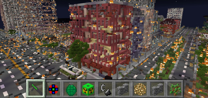 The following items in Minecraft PE have been replaced with explosives and weapons which are much more powerful compared to before in terms of destruction.
