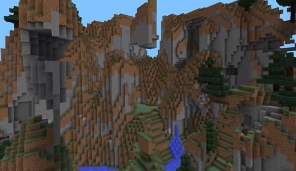 The closeby area to where you spawn consists of a high amount of extreme hills and mountains. If you look up in the sky you will see a couple of large floating chunks of dirt and stone. The biome as a whole is quite compact which makes the terrain more exciting and fun to explore.