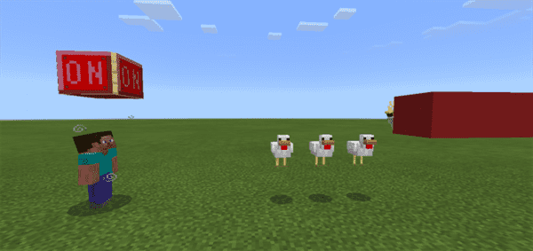 That’s it, to turn it off, just flip the lever labled “On/Off lever” in the up position to turn everything back to normal. The parrots and the chickens should be free and the armor stand will dissappear. You just have to break the ON/OFF switch block if you don’t want it floating in the air.