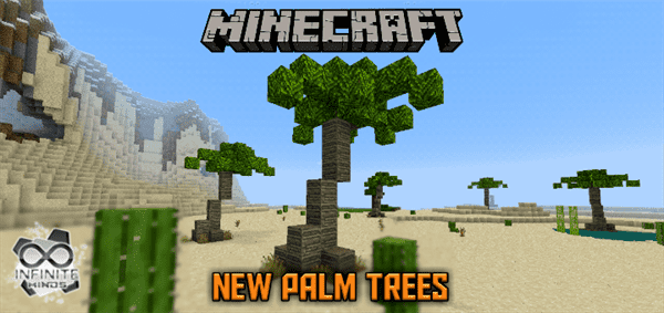 This add-on adds palm trees to your game. New palm trees with natural generation in the desert biome will make the desert a less empty and more realistic biome. This add-on also adds some new palm blocks!