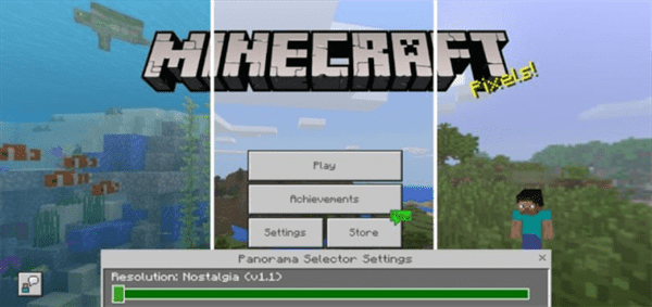 This resource pack adds a new setting to the game which allows you to switch between panorama. The panorama is an image which is displayed on the Minecraft start screen. For most big updates there have been a new and refreshing panorama image. By using this resource pack you will be able to switch between three different panorama images (Nostalgia, Better Together and Update Aquatic).