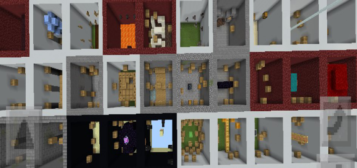 This is a 30 level world. Every level is in a 7×7 box. You will start off at the bottom and make your way to the top to move on to the next level. The 1st box is a tree, then you will move on to finding diamonds fighting the wither and the Ender dragon and end off celebrating. There will be more boxes like a biome explorer box and a trading hall box.