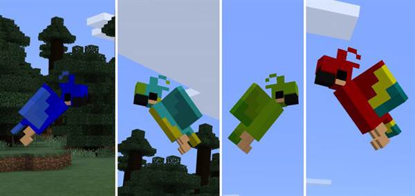 Parrots are going to be an official feature in version 1.1 for Minecraft PE. Soon after it had been announced someone created a parrot addon and here we are releasing it. The textures are supposed to be very similar to what we will see in the official version. But the behaviors will likely be quite different seeing as right now it acts too similar to a bat (in the addon).
