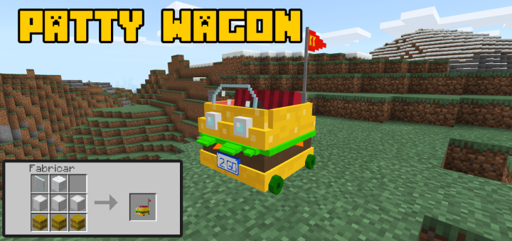 To make the patty wagon, three blocks of wheat, three blocks of iron, one block of wool and one pane of glass are needed.