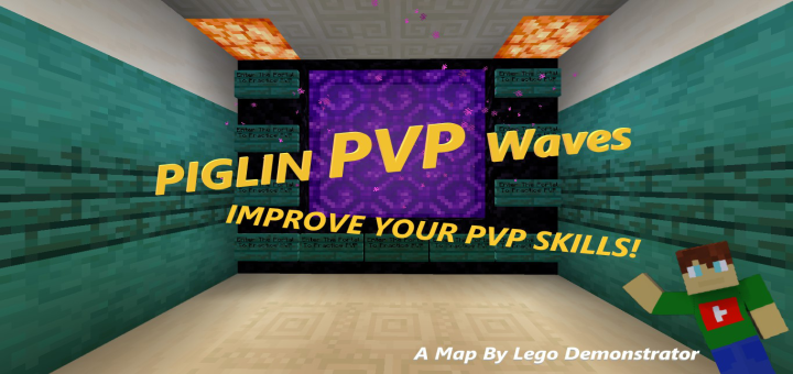 This map is a pvp map where you fight piglins. It has five waves of piglins, 1,3,5,10, and 3 piglin brutes for stage 5. it also has a pro stage where you fight ten piglin brutes. To start, jump into the portal and go in the room on the right. grab your kit and start the wave! I hope you enjoy this pvp map made by Lego Demonstrator!