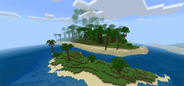 The Pirate-Island is a customize built landscape with much jungle trees (also customized), which was created with WorldPainter and then ported over to Bedrock Edition. Around the island there is an ocean and after the ocean you will find a normal generated Minecraft World, so that you can play this map in survival mode too.