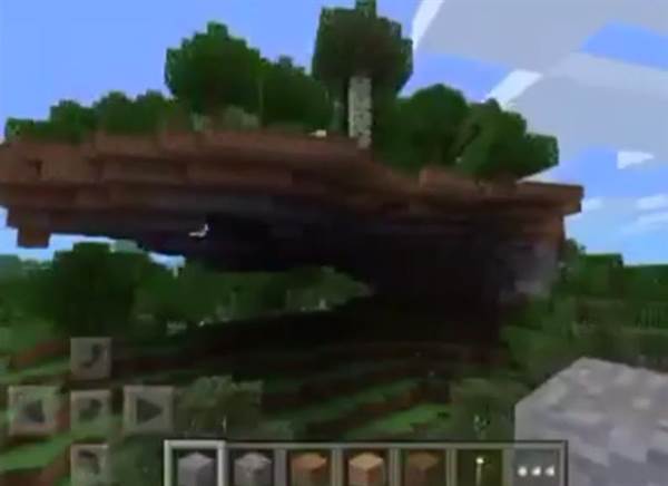 In this seed you will spawn in a forest. Assuming you are in create, fly up high (about 20 blocks up) in the sky and then move straight forward. Soon you will notice a medium sized “mushroom” looking mountain and/or overhang. The reason why we choose to describe it as a mushroom is because its shape.