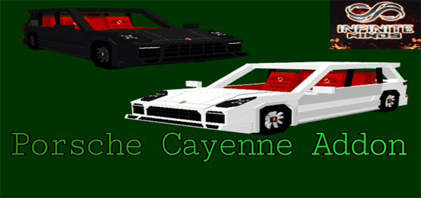 This addon adds the porsche cayenne which is a very powerful suv that you can now use in your minecraft worlds or walk in your minecraft cities or make races in your worlds can accommodate 4 people