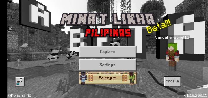 Minecraft bedrock completely translated into tagalog . No english word involved , it’s pure tagalog . Everything is translated – Settings , Commands , Items, Editing Blocks , Server , Death message and even the Title Screen. Minecraft in Tagalog in this pack are now called ” Mina’tLikha”.