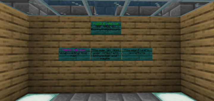Welcome to Puzzle master, this map contains various puzzles like Redstone, crafting, searching and other varieties of puzzles. the map contains 6 levels of Minecraft knowledge and will see how good you are at remembering things. Click me for more info on this map I have constructed.