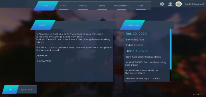 PvP UI is a resource pack that i made which transforms your Vanilla Minecraft UI into something similar to Java PvP Clients. Not only that , it supports Fate Client for Fate Client Users! This UI was inspired from PvPLounge..