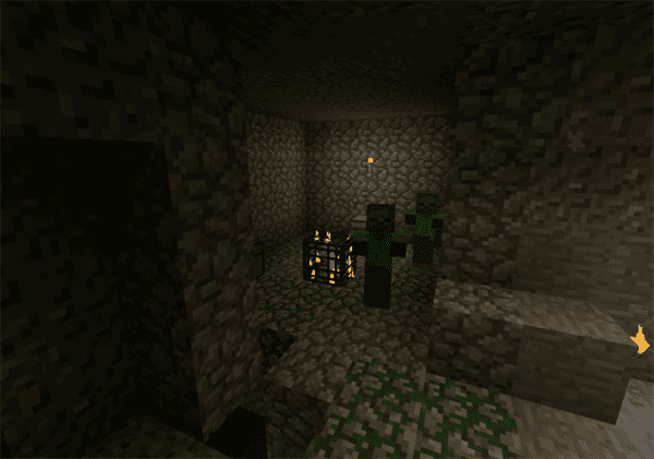 In the dungeon you will find a zombie spawner and two chests. In the chests you will find the following items: