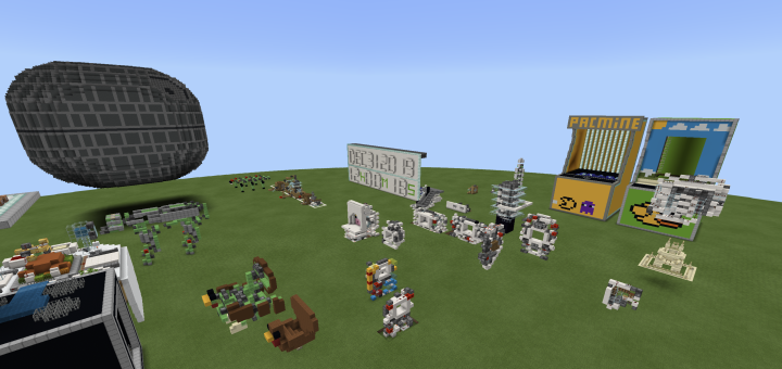 Have more than 20 redstone/command builds on my redstone testing world, ranging from 4×4 doors to flying machine recreations. (Some are unfinished projects and do not completely work while others might be broken.)