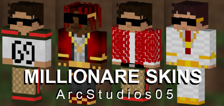 This skin pack contains five icy millionaires designed by ArcStudios05. It includes a rapper, a dude in a full Gucci suit and more! Please subscribe to ArcStudios05 Minecraft YouTube channel for more cool Minecraft content like this! Enjoy!