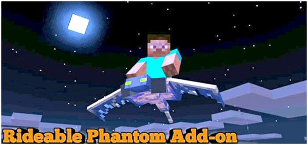 The Rideable Phantom Add-on adds new features which lets you use the Phantom as a flying riding mount. Once seated on top of the Phantom you will be able to control it and go in any direction that you want to go. Just make sure that you are in creative mode, or otherwise it might attack you while you’re riding it.