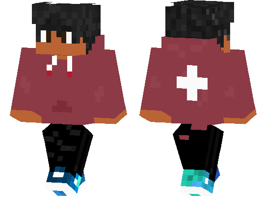 Boy with red hoodie and white plus on its back