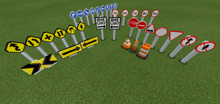 This add-on adds decorations meant to be used for city projects. Majority of this add-on adds signs, and 3 traffic cones. To remove them, you must be in creative and use a barrier block and interact with them.