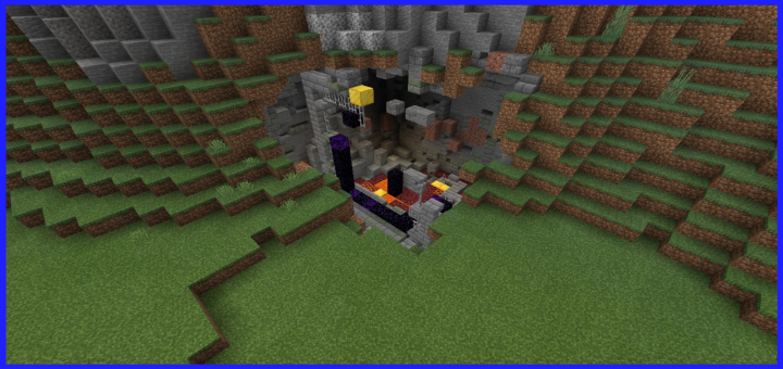 Want weird and rare generation seeds? Here is a ruined portal that generated close to spawn inside extreme hills that formed looks like a cave. The ruined portal is also huge.