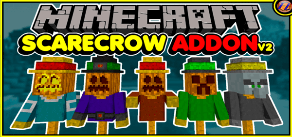 This addon introduces new scarecrows to Minecraft, these will be used to scare off monsters in your world! Use these to scare off creepers, skeletons, witches, the illagers, and more! Say good byes to those nasty monsters and say hello to a simi-peaceful world!