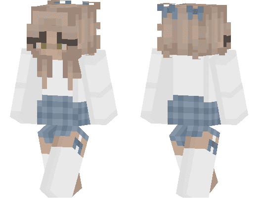 School girl,blonde hair,white t shirt,blue skirt,blue ribbons in hair