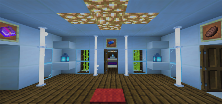 This addon is a secret underground base under a village which you and your friends can easily use. It has four parts and 8 rooms including a glass dome in the nether. This build is modern inspired and we tried to make it as modern as possible. It is made out of mainly quartz and dark oak wood.