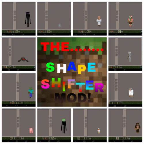 In this mod you are able to shapeshift into any mod in Minecraft PE. Through a simple layed out GUI you can easily select the mob you want to turn into. Every mob got its own ability. For example, if you are a spider you can climb walls and if you are a chicken you can fly.
