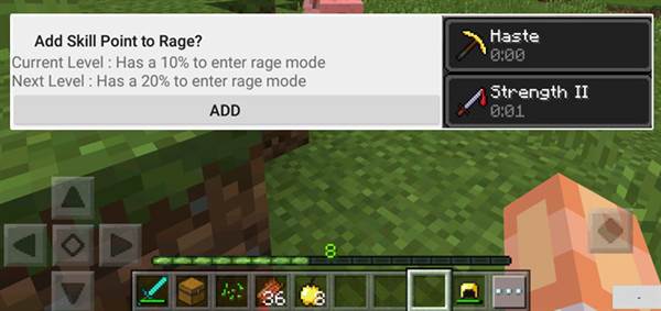 The Skills Mod adds a new use for experience points. After you’ve obtained enough experience you can use these points for upgrading skills. The skills are mostly related to battle and survival and will automatically add different types of potion effects when a certain thing happens. For example, the first level of the Rage skill adds a 10% chance of entering rage mode (Haste, Strength II) for a few seconds.