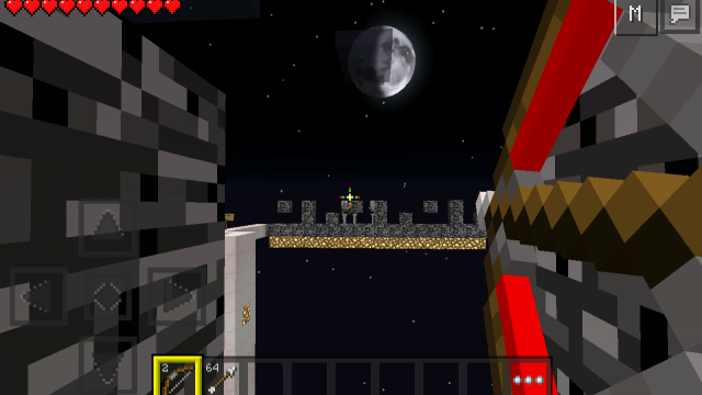 This is a map where you can compete against your friends in a bow battle. The map is split up in two different bases made out of bedrock. Before starting the battle you should be split up in two teams and make sure everyone got the same amount of arrows. When both teams are ready you can start the battle.