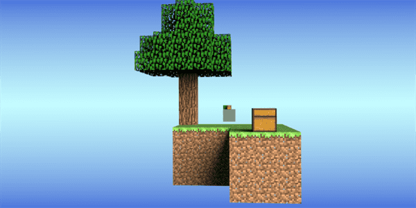 Far up in the sky is a floating island built. It’s only a few blocks in size with a tree and a chest on top. From here you have to survive as long as you can on the skyblock. By using the items found in the chest and carefully using the tree in a clever way (such as destroying some of the leaves to try and find apples) and such it is possible.