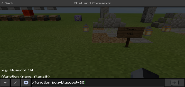 Currently, this is in the testing phase, because of how advanced it is, you can only buy a few colors of wool but I’m in the middle of making more! The reason it takes a while is that for every amount of item I need it takes 1 function which means if I was making obsidian to be purchasable then I would have to type 1 – 65 functions per block that could stack up to 64. But this is not done yet except a ton more!