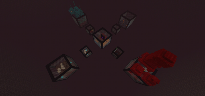 A small cube size is just 5×5 (inside the cube). These cubes mostly contains farms, trees, some resources, and even a treasure and gifts! Some small cubes has a cobblestone generator or a broken nether portal. One more thing, more than half of the cubed in the map are these cubes.
