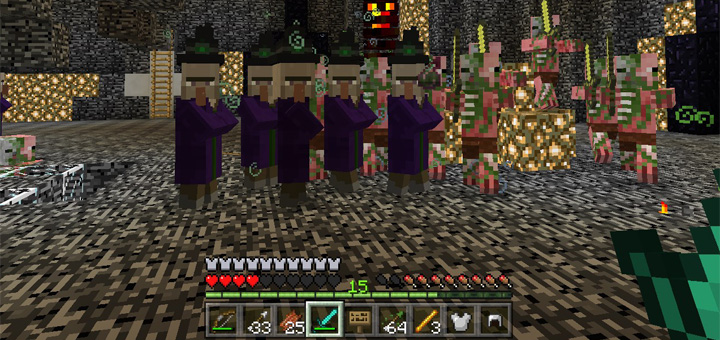 Once you are ready to begin drop into the water to access the arena. Then enter the first room on the right and press the button on the diamond block to start the first wave of monsters. As soon you’ve pressed the button you’ve got a few seconds to leave the room as it soon will be filled with gravel.